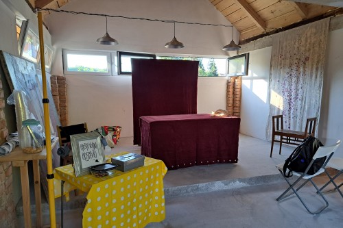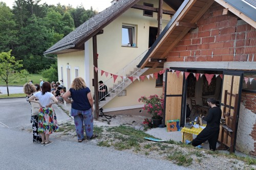 Prostor, ki v vasi odpira nove možnosti za srečanja, pogovore, objeme med sosedi, sovaščani, umetniki, prijatelji ... postaja točka, kjer se ima skupnost možnost povezovati in središčiti skozi ustvarjalnost.