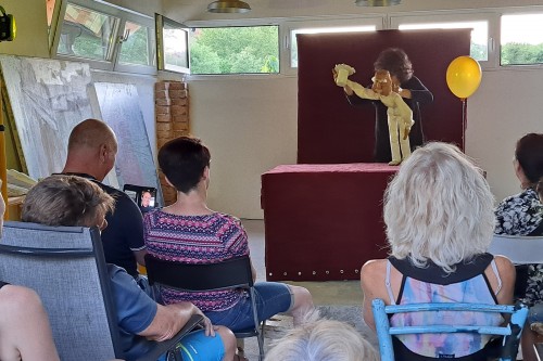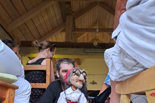 V nedeljo, 29. 6. 2025, je Skedenj kulture Pr' Petač s smehom domačinov napolnila duhovita lutkovna predstava Starčki na begu.