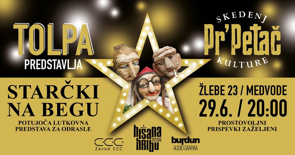 Skedenj kulture Pr' Petač, ki korak za korakom postaja prostor druženja vaške skupnosti, je tokrat obiskala mala ekipa uličnega gledališča Tolpa z lutkovno predstavo za odrasle Starčki na begu.
