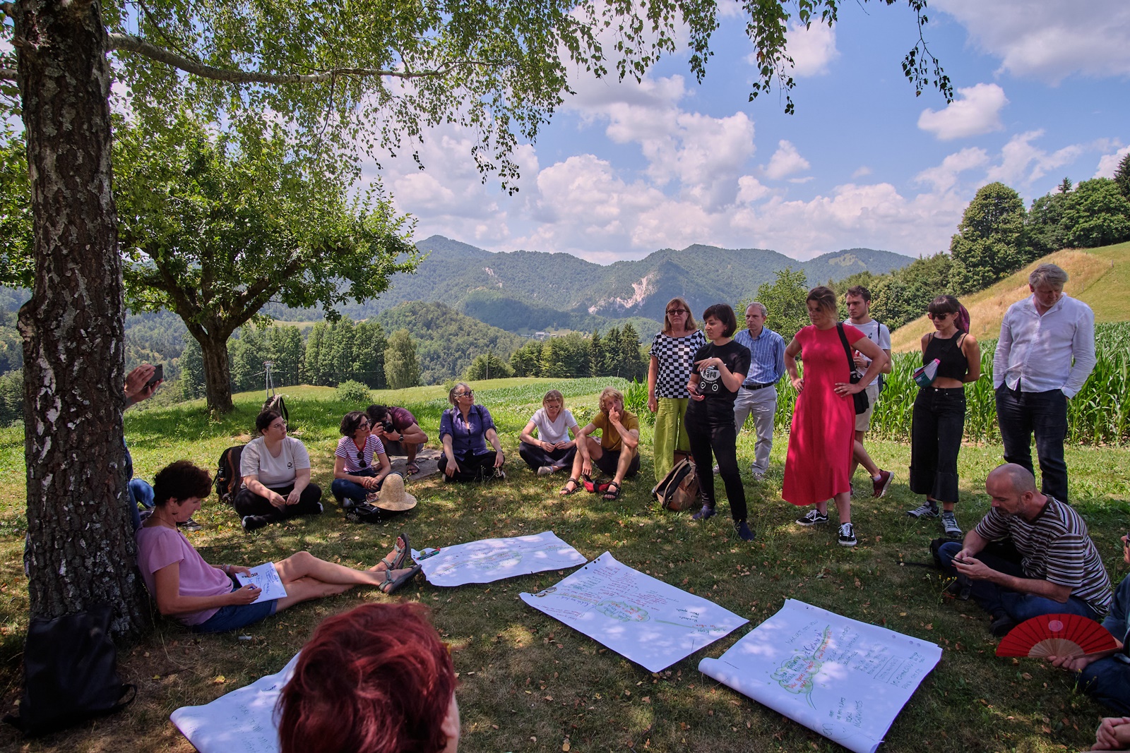 Since spring 2021, several experimental workshops have been held, where local residents, artists, experts, visitors to the area, and other participants have developed ideas for establishing new community spaces, such as: traditional orchards as modern social spaces, dry stone walls as elements of cultural landscapes and meeting places, cultural heritage buildings as new cultural spaces, community art of cloth painting as a connecting activity for the local community, wood as a local material for furnishing public spaces in remote areas, forest walking paths as meeting spaces, and rural art for the development of community practices.