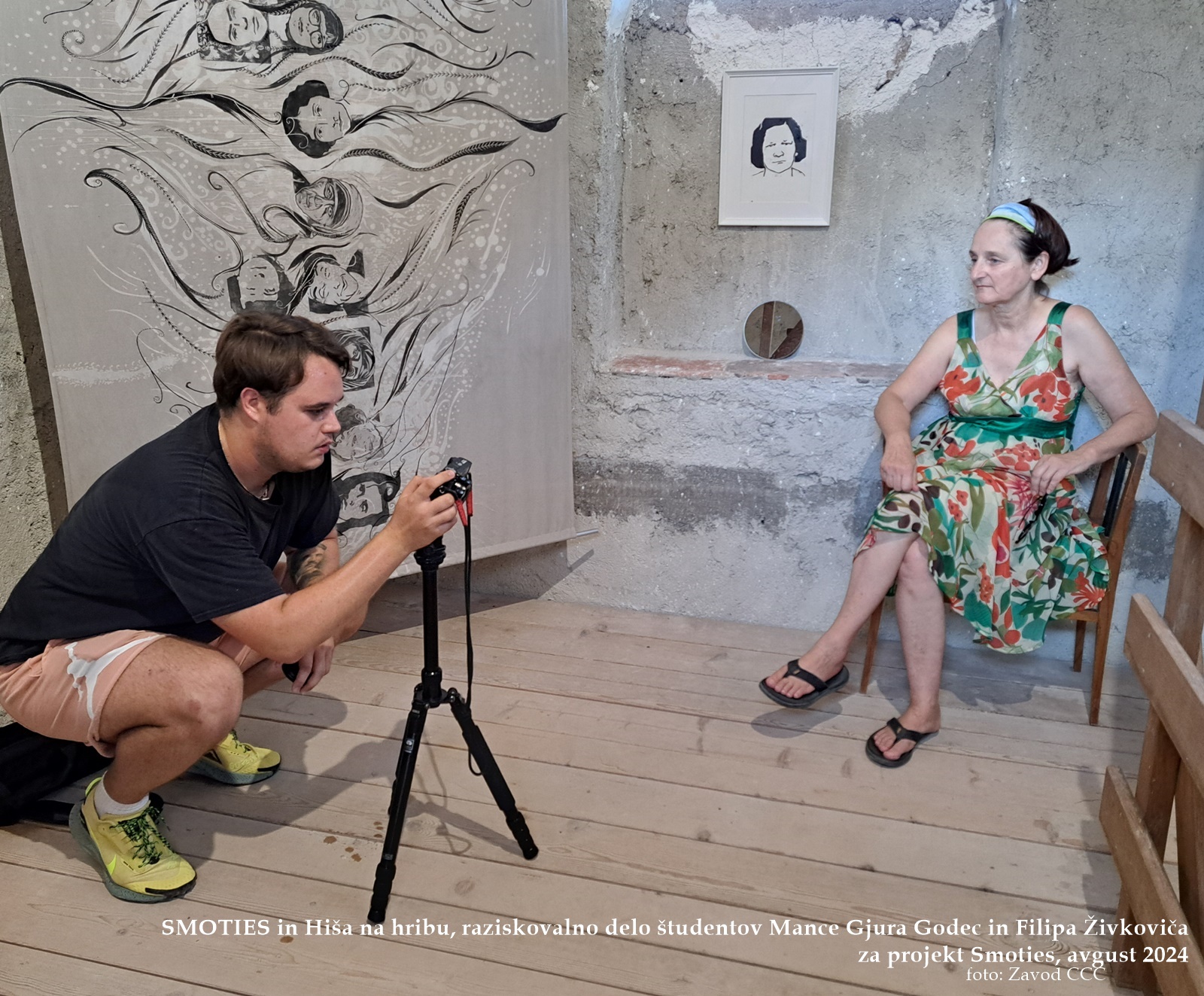 Nazadnje smo se srečali po otvoritvi letošnje razstave, ko sta nas na lokaciji pri Sveti Marjeti v Žlebah obiskala podiplomska študenta Manca Gjura Godec in Filip Živkovič z namenom, da skupaj posnamemo zgoščen evalvacijski intervju o našem sodelovanju in podpori projekta SMOTIES naši Hiši na hribu.