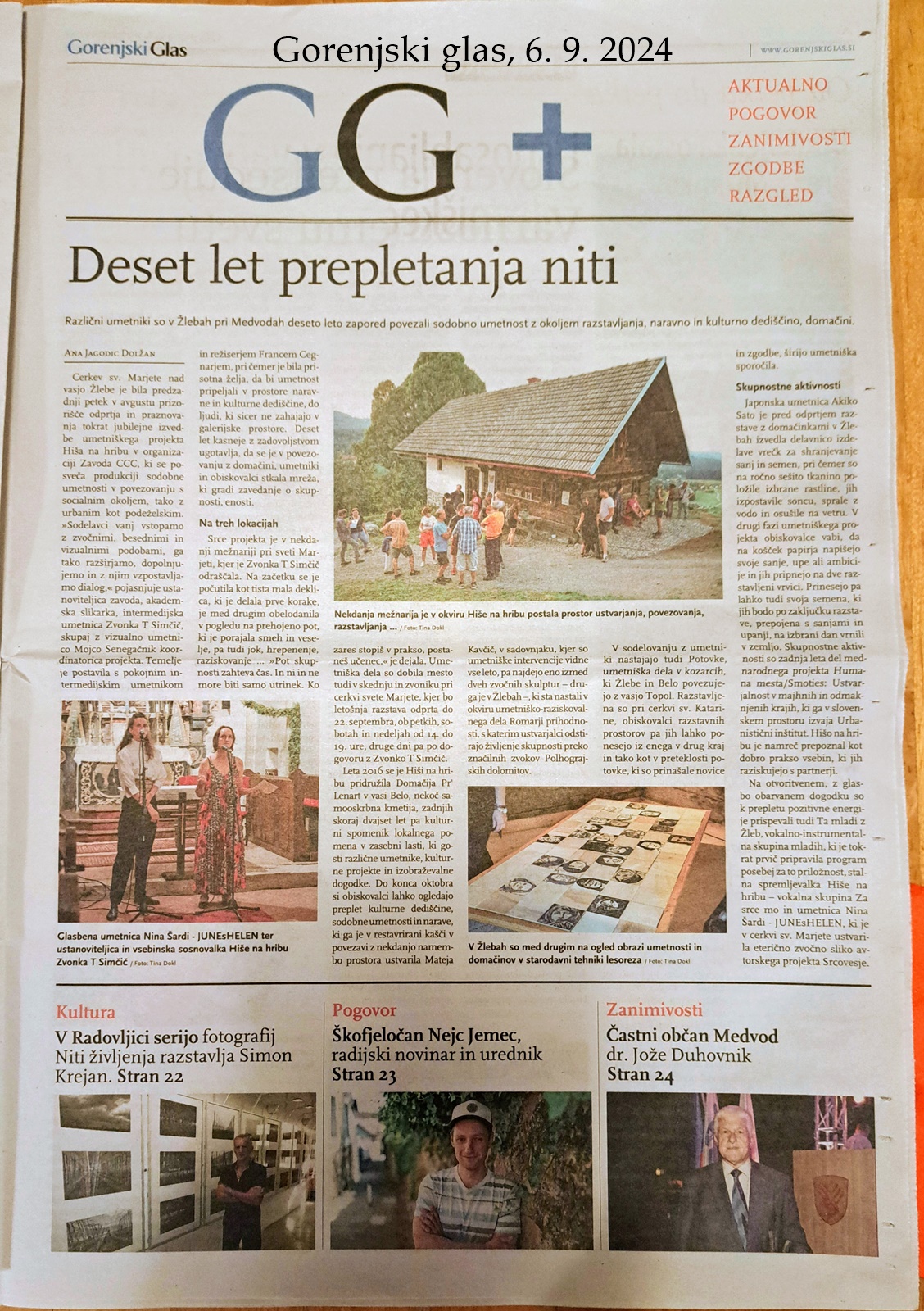 6. 9. 2024 je časopis Gorenjski glas v tiskani izdaji objavil članek o našem letošnjem projektu.