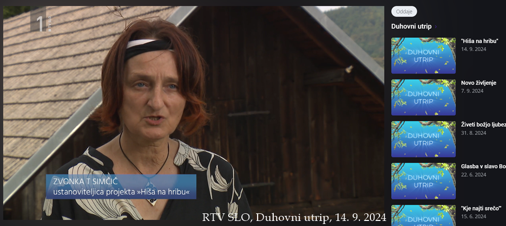 Oddaja je dostopna v arhivu RTV Slovenije, ogledate si jo lahko na povezavi: Duhovni utrip o Hiši na hribu, 14. 9. 2024