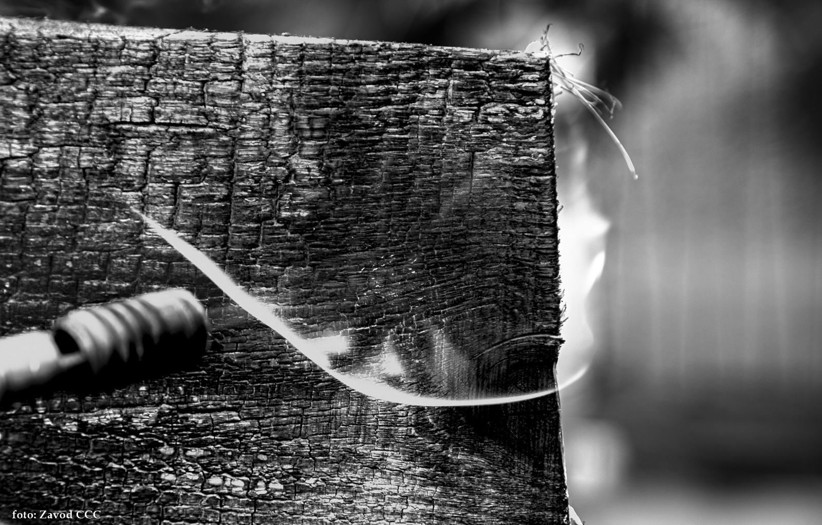 Gre za žganje lesa z rahlim oglenenjem površine lesa, ne da bi zgorel celoten kos.