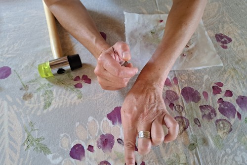 Prve dni v avgustu ustvarja na umetniški rezidenci v Žlebah umetnica Akiko Sato.