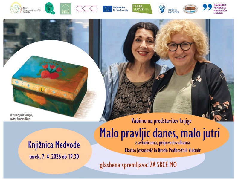 Prvi predstavitvi knjige bosta v torek, 7. 4. 2026 ob 19.30 v Knjižnici Medvode