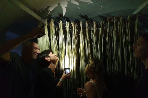 V spodnjem nadstropju se sušijo zelene močvirske trave, v zgornjem pa je umeščeno delo z naslovom »V klobčič spravljene vezi (ki jih lahko vedno odvijem)«.
