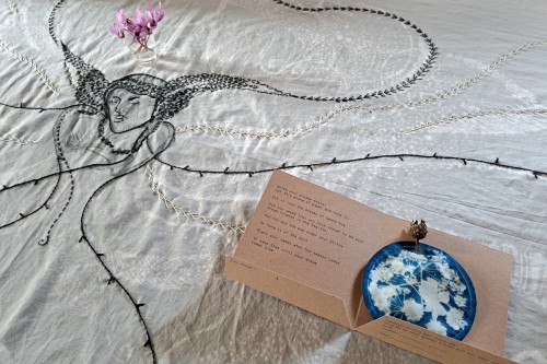 Dreams of Seeds Workshop / Making the bag to put your dreams and seeds (Cyanotype on hand sewn fabric)
