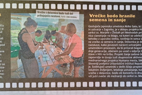 V okviru priprav na razstavo Hiša na hribu 2024 je umetnica Akiko Sato z domačinkami izvedla ustvarjalno delavnico, ki postaja del razstave.