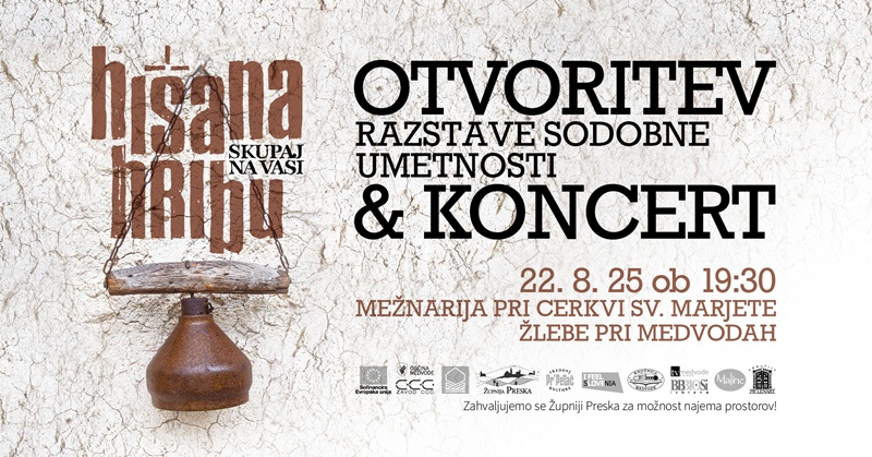 Razstava Skupaj na vasi - Hiša na hribu 2025 se bo uradno odprla s prireditvijo na Sv. Marjeti v Žlebah, 22. avgusta 2025 ob 19.30 uri, ko bomo predstavili tudi vse letošnje gostujoče umetnice in umetnike. Prireditev bo zaklučil koncert obeh glasbenih zasedb.